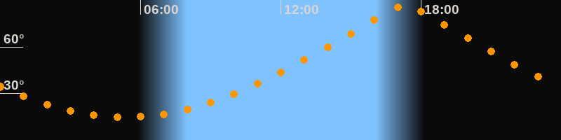 | Höchster Stand (Kulmination) | 17:19 Uhr (h = 86,7°) |