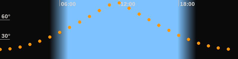 | Höchster Stand (Kulmination) | 11:42 Uhr (h = 86,7°) |