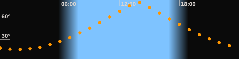 | Höchster Stand (Kulmination) | 13:50 Uhr (h = 86,7°) |
