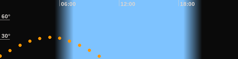 Höchster Stand (Kulmination)05:00 Uhr (h = 33,2°)