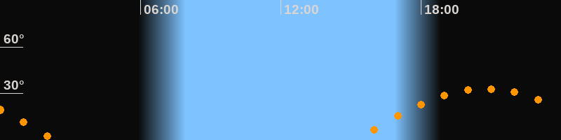 Höchster Stand (Kulmination)20:44 Uhr (h = 33,2°)