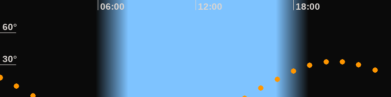 Höchster Stand (Kulmination)20:34 Uhr (h = 33,2°)