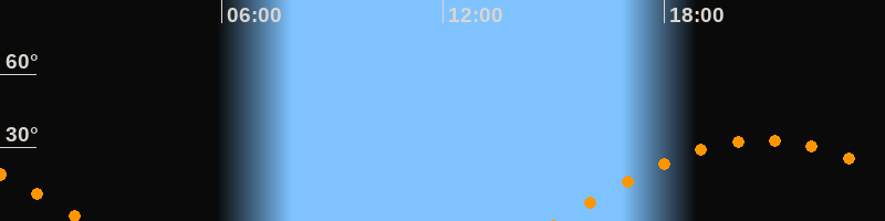 Höchster Stand (Kulmination)20:40 Uhr (h = 33,2°)