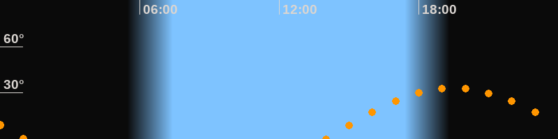 Höchster Stand (Kulmination)19:29 Uhr (h = 33,2°)