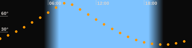 | Höchster Stand (Kulmination) | 08:18 Uhr (h = 85°) |