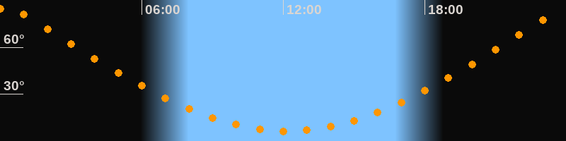 | Höchster Stand (Kulmination) | 00:09 Uhr (h = 85°) |