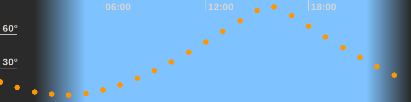 | Höchster Stand (Kulmination) | 15:43 Uhr (h = 85°) |