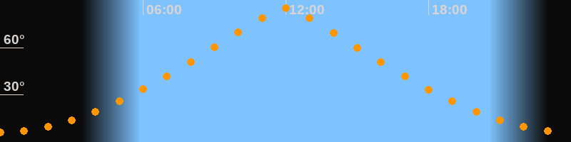 | Höchster Stand (Kulmination) | 11:59 Uhr (h = 85°) |