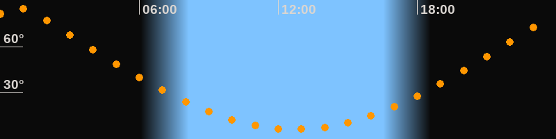 | Höchster Stand (Kulmination) | 00:42 Uhr (h = 85°) |