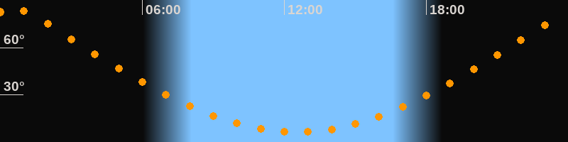 | Höchster Stand (Kulmination) | 00:30 Uhr (h = 85°) |
