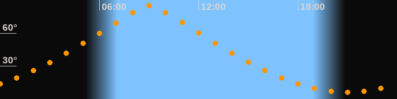 | Höchster Stand (Kulmination) | 09:00 Uhr (h = 85°) |