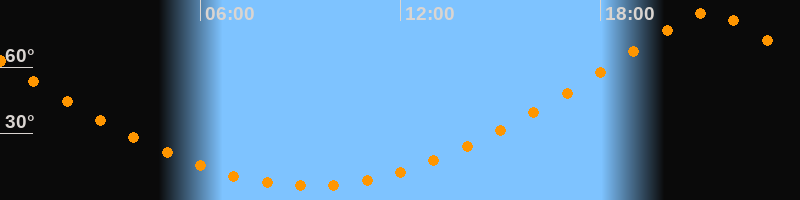 | Höchster Stand (Kulmination) | 21:15 Uhr (h = 85°) |