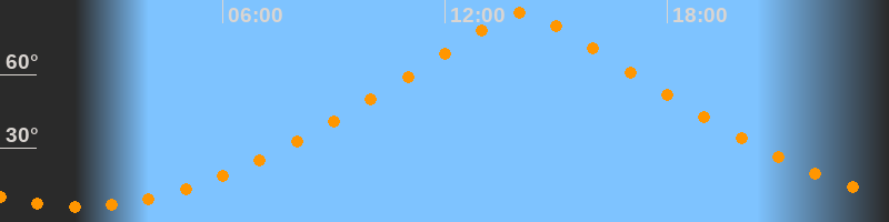 | Höchster Stand (Kulmination) | 14:05 Uhr (h = 85°) |