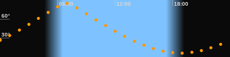 | Höchster Stand (Kulmination) | 06:53 Uhr (h = 85°) |