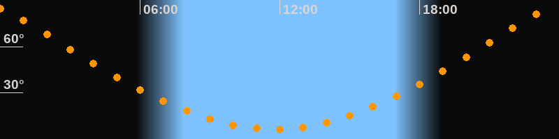 | Höchster Stand (Kulmination) | 23:44 Uhr (h = 85°) |