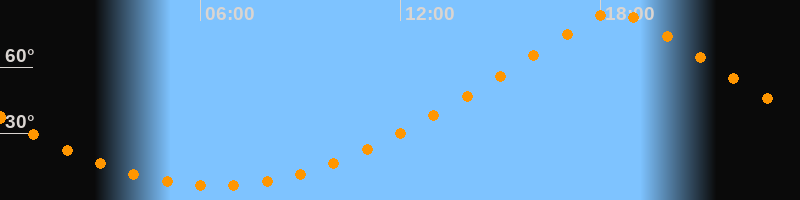 | Höchster Stand (Kulmination) | 18:26 Uhr (h = 85°) |