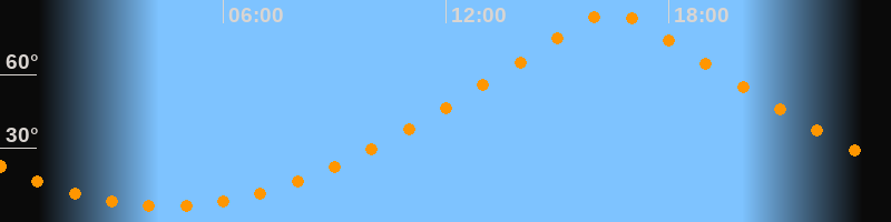 | Höchster Stand (Kulmination) | 16:28 Uhr (h = 85°) |