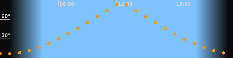| Höchster Stand (Kulmination) | 12:28 Uhr (h = 85°) |