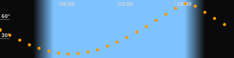 | Höchster Stand (Kulmination) | 19:10 Uhr (h = 85°) |