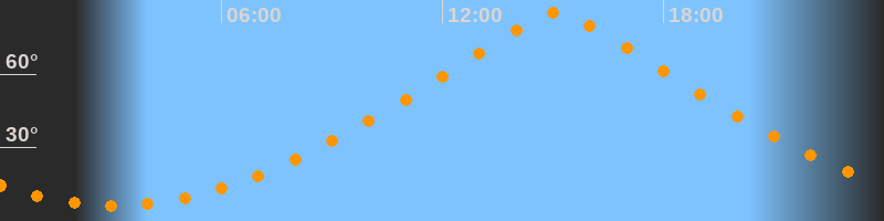 | Höchster Stand (Kulmination) | 15:06 Uhr (h = 85°) |