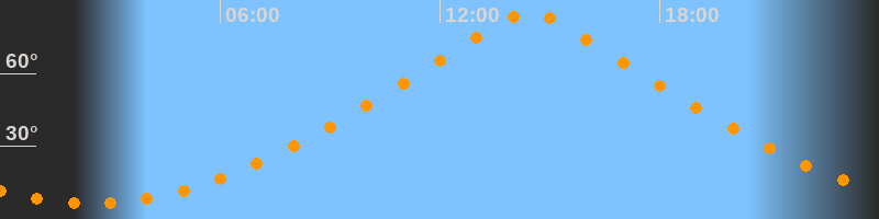 | Höchster Stand (Kulmination) | 14:27 Uhr (h = 85°) |