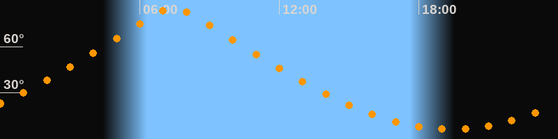 | Höchster Stand (Kulmination) | 07:26 Uhr (h = 85°) |