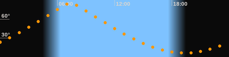 | Höchster Stand (Kulmination) | 07:22 Uhr (h = 85°) |