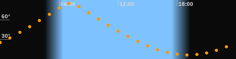 | Höchster Stand (Kulmination) | 07:07 Uhr (h = 85°) |