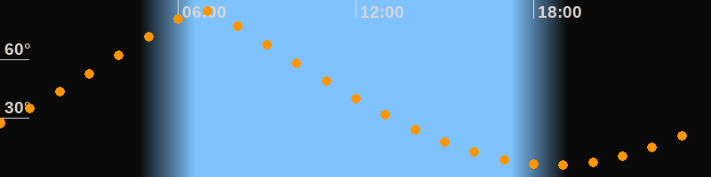 | Höchster Stand (Kulmination) | 06:47 Uhr (h = 85°) |
