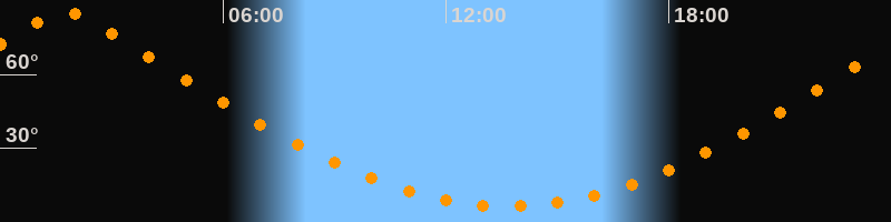 | Höchster Stand (Kulmination) | 01:44 Uhr (h = 85°) |