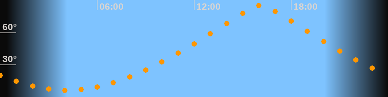 | Höchster Stand (Kulmination) | 16:06 Uhr (h = 85°) |