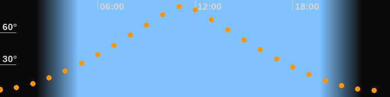 | Höchster Stand (Kulmination) | 11:15 Uhr (h = 85°) |