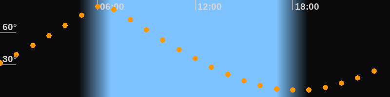 | Höchster Stand (Kulmination) | 06:16 Uhr (h = 85°) |