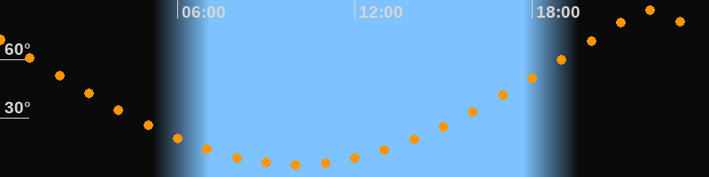 | Höchster Stand (Kulmination) | 22:01 Uhr (h = 85°) |