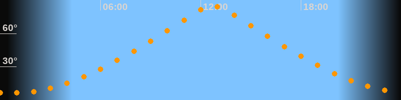 | Höchster Stand (Kulmination) | 12:43 Uhr (h = 85°) |