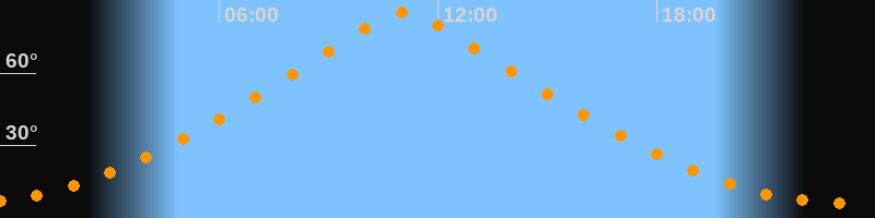 | Höchster Stand (Kulmination) | 11:04 Uhr (h = 85°) |