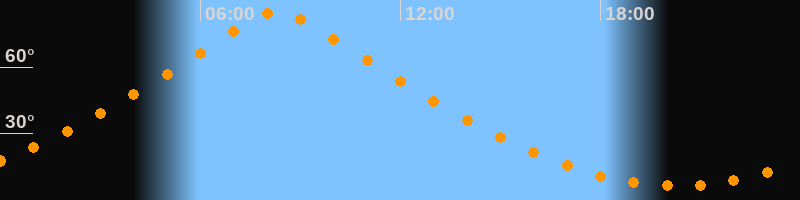 | Höchster Stand (Kulmination) | 08:19 Uhr (h = 85°) |