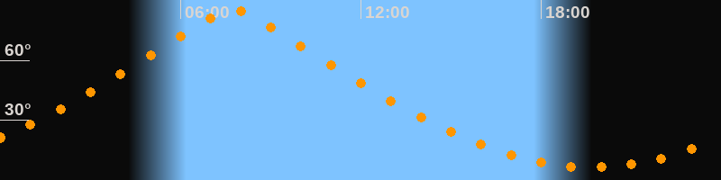 | Höchster Stand (Kulmination) | 07:44 Uhr (h = 85°) |