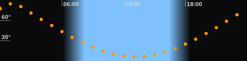 | Höchster Stand (Kulmination) | 01:11 Uhr (h = 85°) |