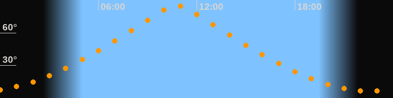 | Höchster Stand (Kulmination) | 10:46 Uhr (h = 85°) |