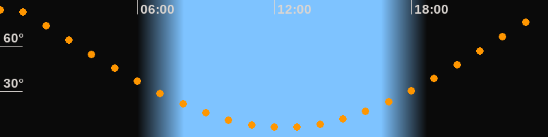 | Höchster Stand (Kulmination) | 00:21 Uhr (h = 85°) |