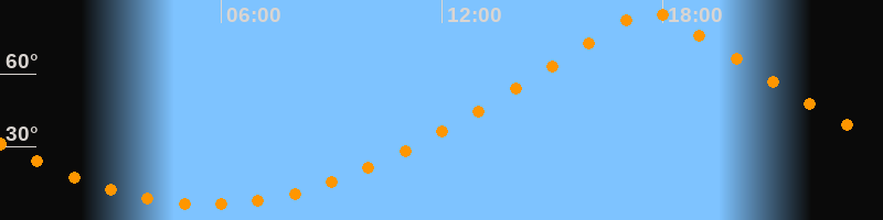 | Höchster Stand (Kulmination) | 17:39 Uhr (h = 85°) |