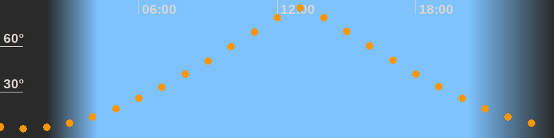| Höchster Stand (Kulmination) | 13:00 Uhr (h = 85°) |