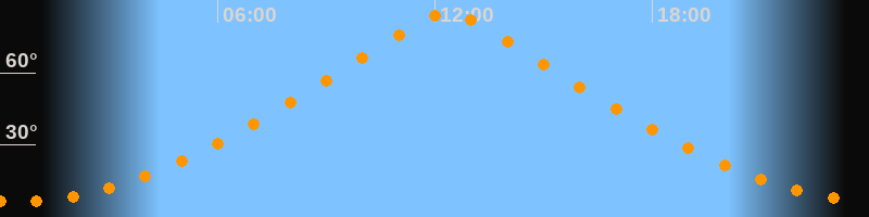 | Höchster Stand (Kulmination) | 12:21 Uhr (h = 85°) |