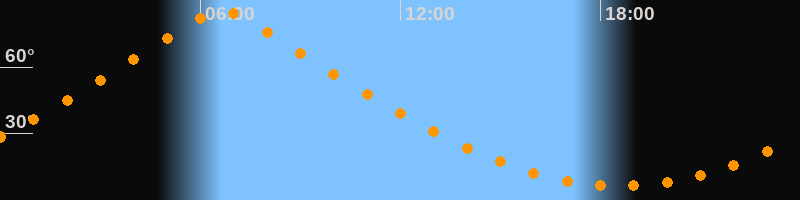 | Höchster Stand (Kulmination) | 06:39 Uhr (h = 85°) |