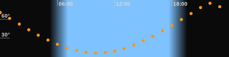 | Höchster Stand (Kulmination) | 22:04 Uhr (h = 85°) |