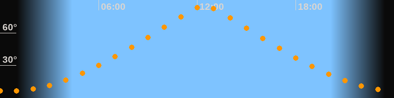 | Höchster Stand (Kulmination) | 12:26 Uhr (h = 85°) |