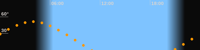 | Aufgang | 20:48 Uhr im Osten (αAz = 70°) |