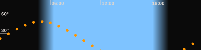 | Untergang | 11:54 Uhr im Westen (αAz = 290°) |