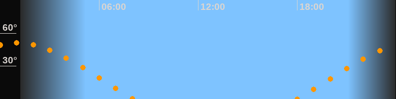 | Untergang | 08:08 Uhr im Westen (αAz = 290°) |